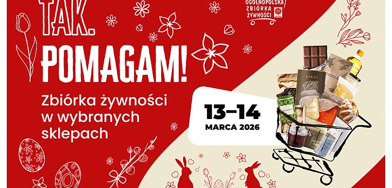 W piątek i sobotę (13–14 marca 2026 r.) w sklepach w całej Polsce trwa 28. Ogólnopolska Zbiórka Żywności „Tak. Pomagam!”. Wolontariusze zbierają produkty spożywcze dla osób i rodzin znajdujących się w trudnej sytuacji materialnej. Do specjalnych koszy można włożyć m.in. kaszę, makaron, olej, konserwy czy herbatę.