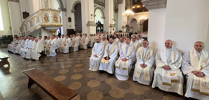 Kapłani z całej diecezji zamojsko-lubaczowskiej zgromadzili się w Wielki Czwartek w katedrze zamojskiej, by wspólnie z biskupem Marianem Rojkiem celebrować Mszę Krzyżma Świętego. To jedna z najważniejszych liturgii w roku kościelnym, podczas której duchowni odnawiają swoje przyrzeczenia kapłańskie, a biskup święci oleje używane później w sakramentach.