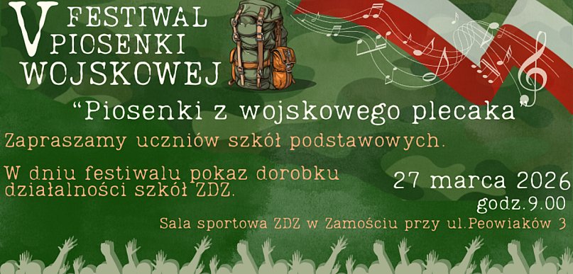 Już w najbliższy piątek, 27 marca, mury Zakładu Doskonalenia Zawodowego w Zamościu wypełnią się patriotycznym brzmieniem. O godzinie 9:00 rozpocznie się Festiwal Piosenki Wojskowej – wydarzenie łączące artystyczną pasję młodzieży z promocją nowoczesnej armii. Gościem specjalnym festiwalu będzie Wojskowe Centrum Rekrutacji w Zamościu.